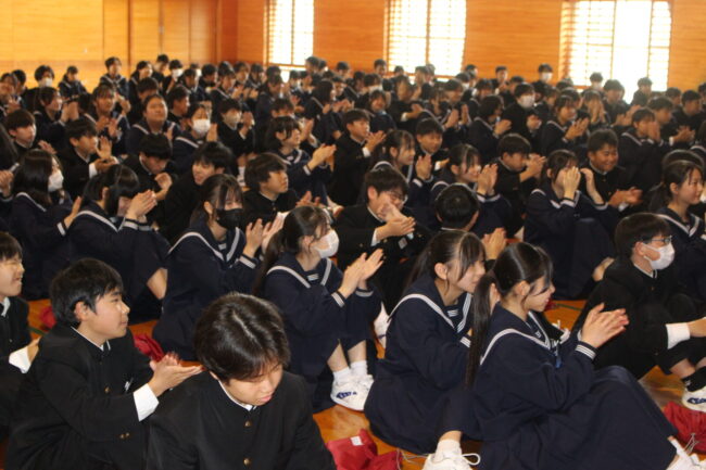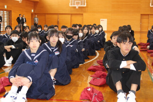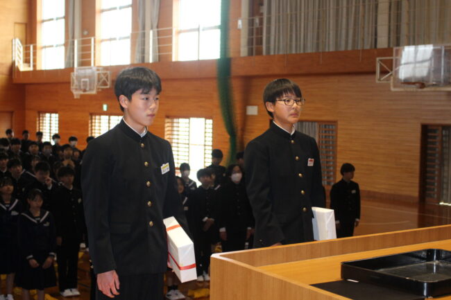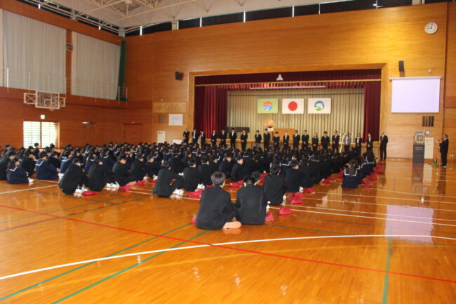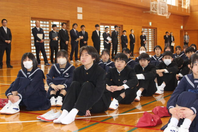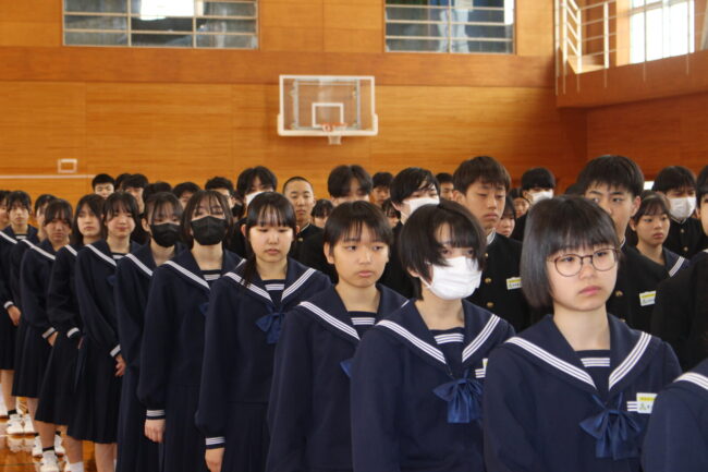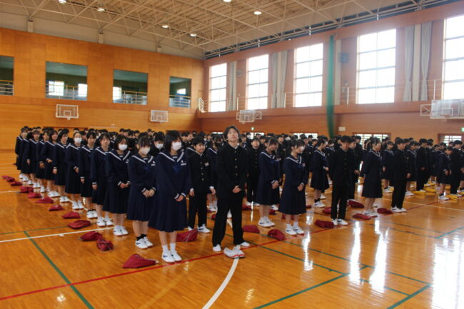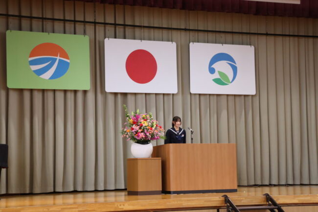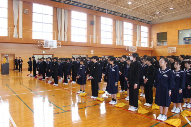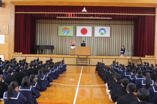 4/7(火)新任式および1学期始業式が行われ、御前崎中学校の令和8年度がスタートしました。始業式では、学年を代表して 鈴木 凛さん、 松下 聖さんが新年度の決意を堂々と述べてくれました。今年度も考動~トライ&エラーの気持ちを忘れずに様々なことに躊躇せず挑戦していきましょう。