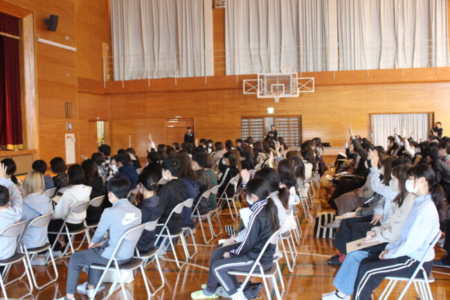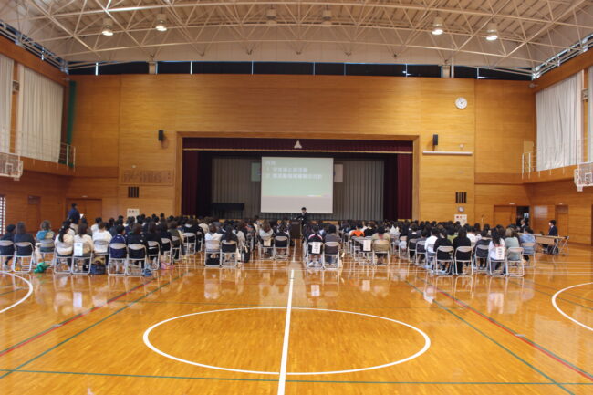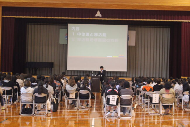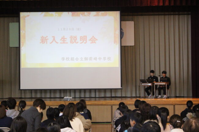 11/28(金)令和8年度入学生を対象にした説明会を行いました。生徒会ができるだけイメージをもってもらえるように学校紹介を考えプレゼンしました。見学ができず、一部内容を変更しましたが、児童の皆さんは4月からの中学校生活を少しでも想像することができていたら幸いです。聞く姿勢がとても素晴らしい皆さんの入学を楽しみに待っています。