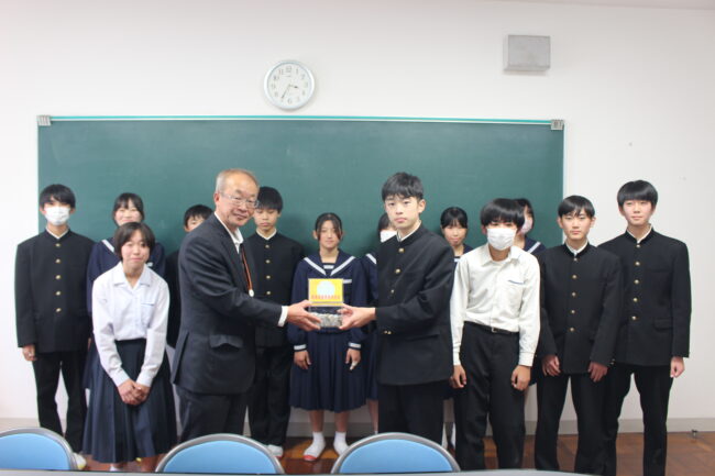 11/20(木)生徒会から赤い羽根募金を牧之原市社会福祉課の方にお渡ししました。