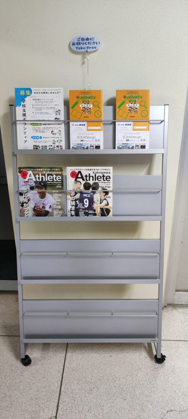 【PTA】資源回収収益金より 2026/03/02 学校にお知らせやチラシが届くことが多いことと進路関係のパンフレットを生徒が気軽に閲覧できるように2種類のパンフレットラックを購入させていただきました。今後も有効に活用させていただきます。
