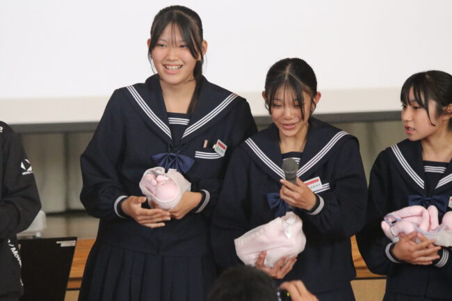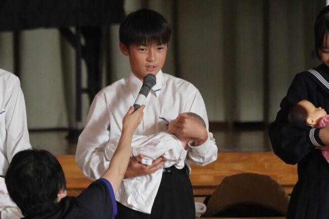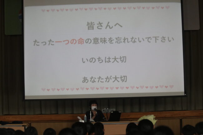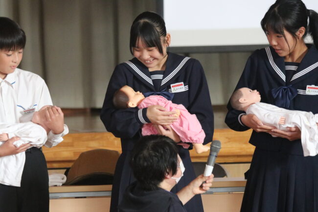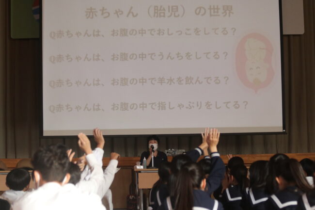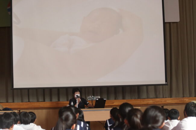 10/23(木)菊川市立総合病院の助産師さんをお招きして生命や性に関するお話をしていただきました。生きることのすばらしさや生命を大切にすることは皆さん誰もが分かっていることと思いますが、今日は様々な経験談をお聞きしたり、妊婦さんや赤ちゃんを抱っこするなどの体験を通して、深く考える機会になったと思います。お忙しい中、講演ありがとうございました。