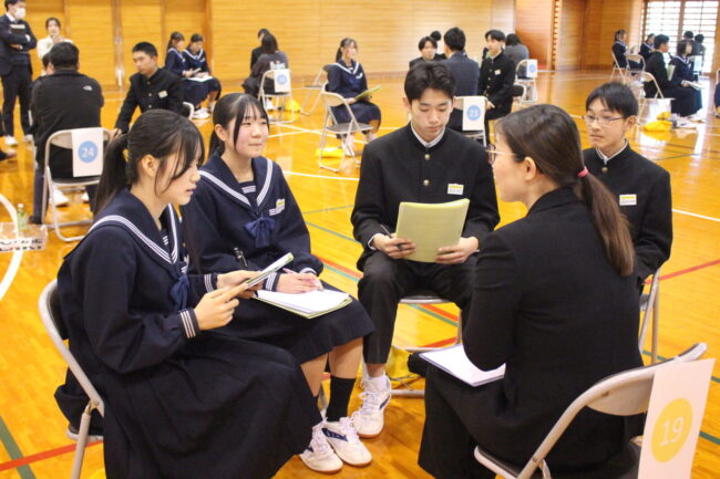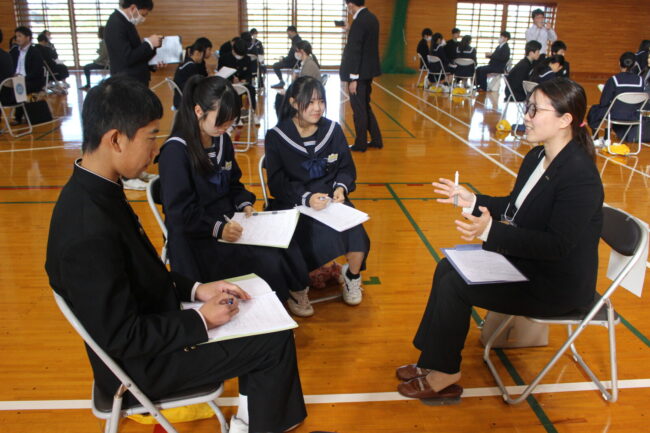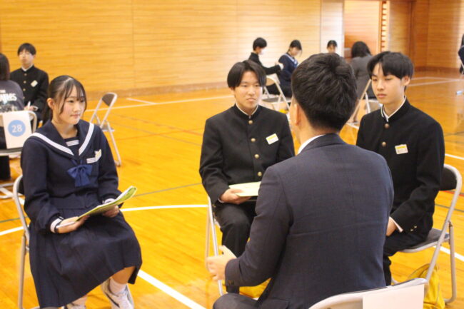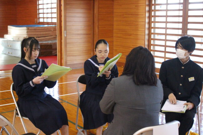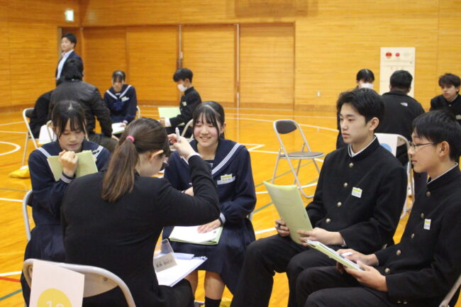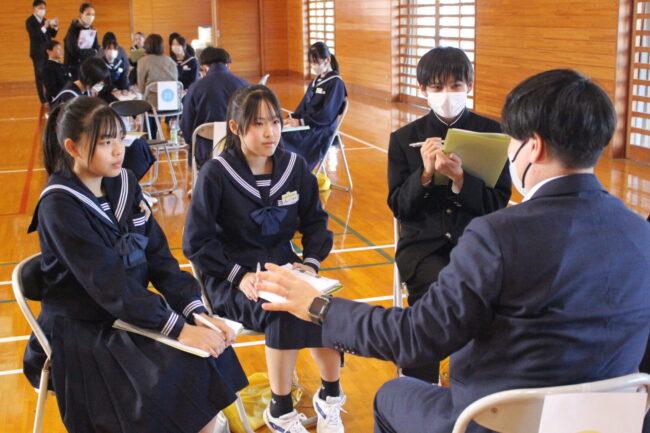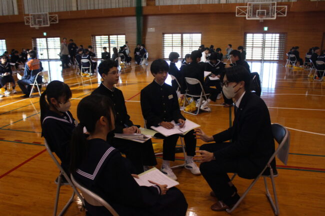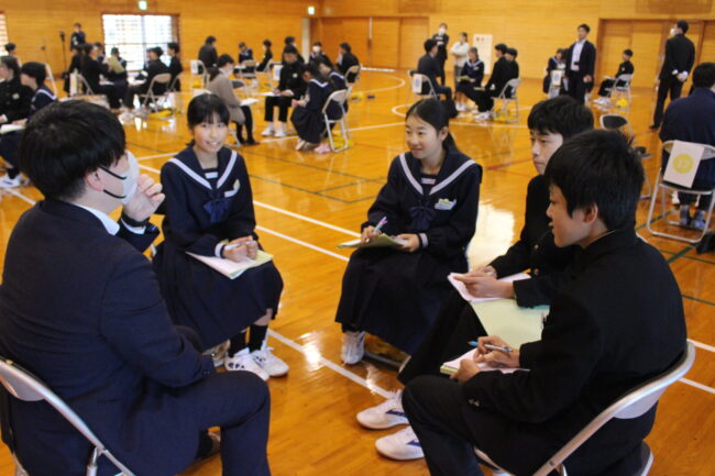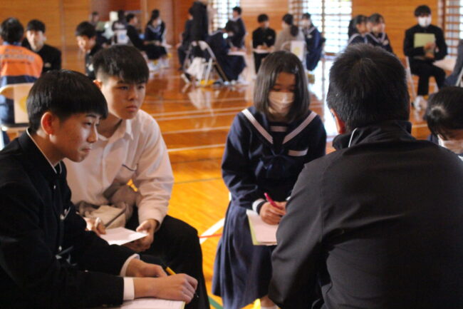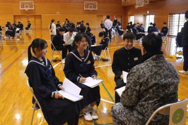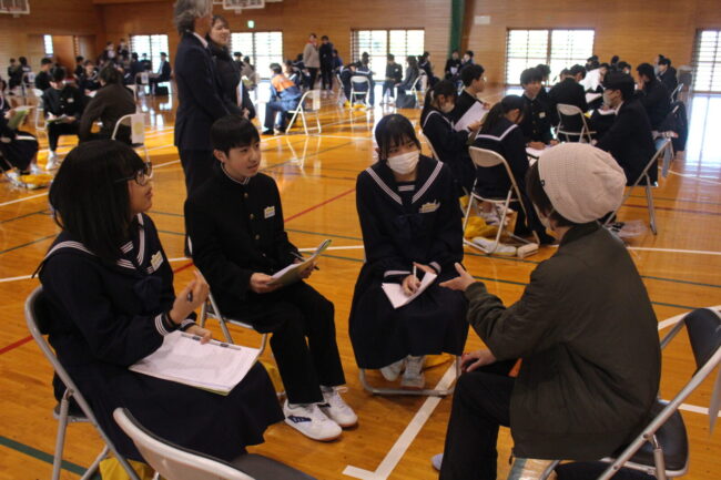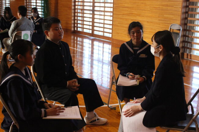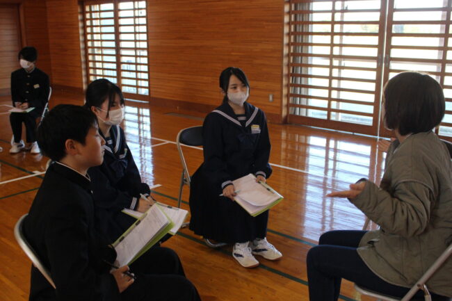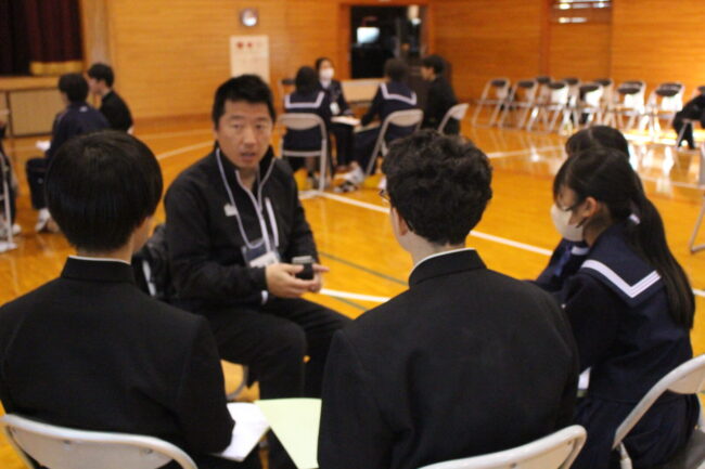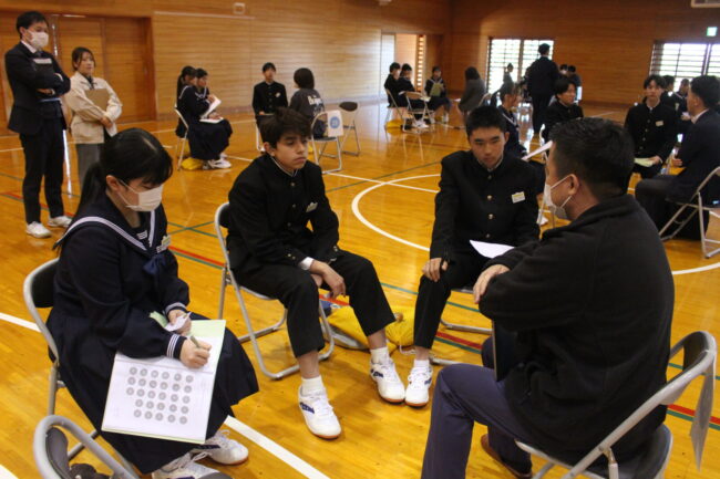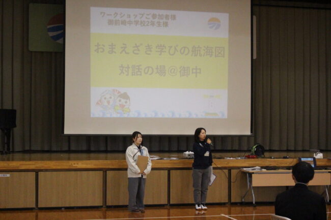 【2年生】学びの航海図 2026/01/23 1/21(水)総合的な学習の時間に御前崎市社会教育課の事業を活用して、「これからどう生きるか」について考えるきっかけ作りとして、大人の講師の方とともに対話するワークショップを行いました。お互いの人生体験や価値観を聞きながら、楽しく対話し考えを深めようとしていました。関係者の皆様ありがとうございました。