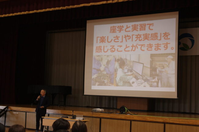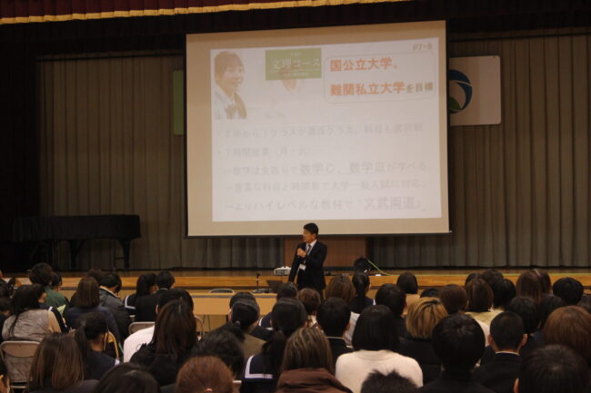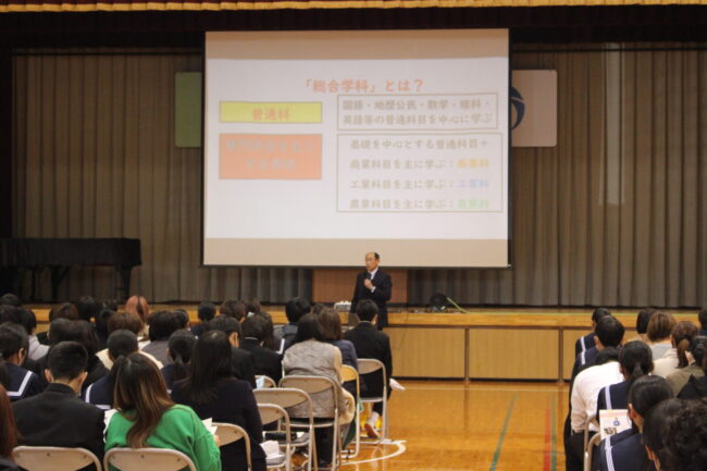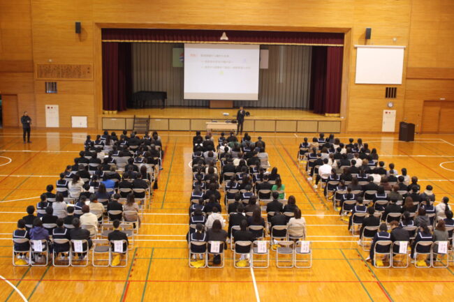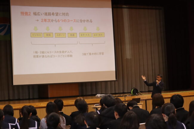 2/18(水)2年生は進路の学習を行いました。近隣6校の高等学校にお越しいただき、それぞれの特色や科の魅力をお話いただきました。本校では、3年生になってからではなく2年生の早い段階から知識が得られるようにしています。高校におかれましては、大変お忙しい中での御対応ありがとうございました。