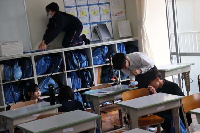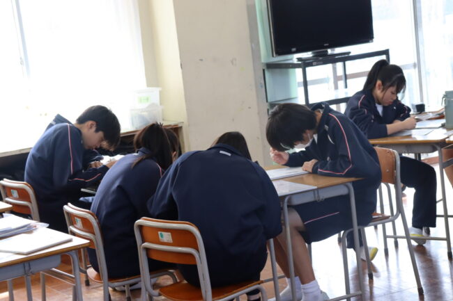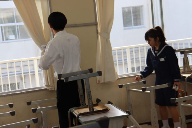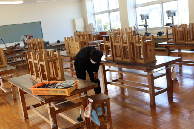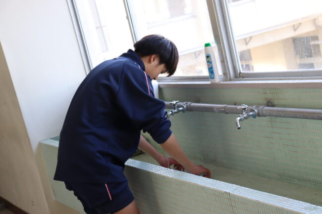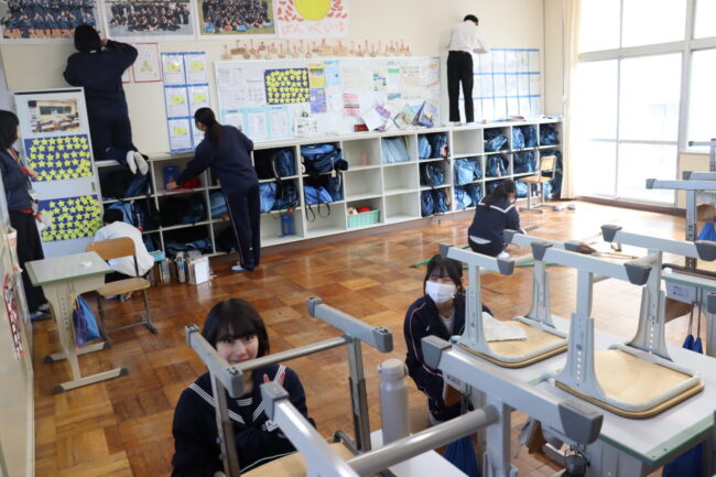 3/12(木)3年生は、3年間過ごした教室や授業で使った特別教室の美化活動に取り組み、校舎への感謝の気持ちを表していました。