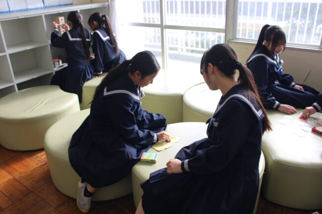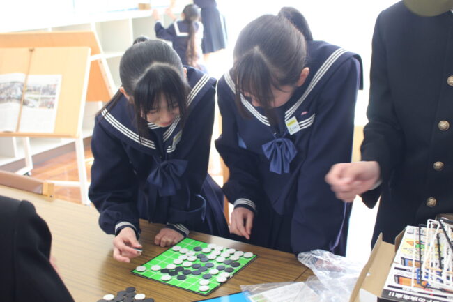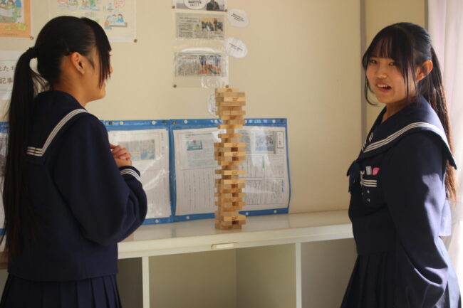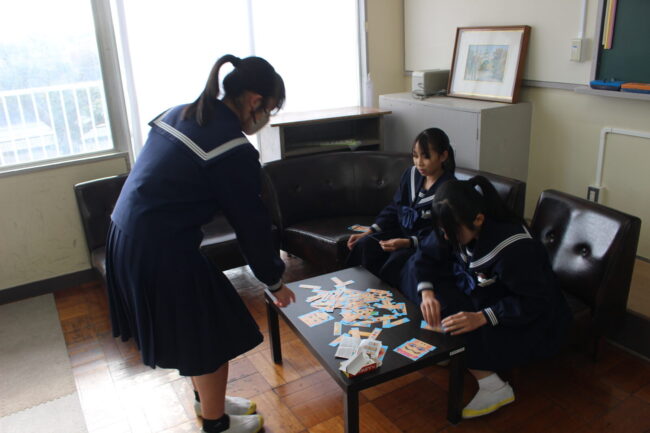 昨年度から生徒運営委員会が企画して、空き教室の一部屋を生徒の憩いの場として活用しています。学級を曜日ごと割り振りをして交代で昼休みを楽しんでいます。