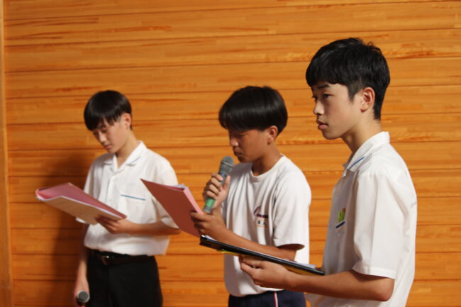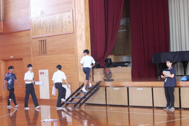 中間発表に向けて 2025/09/22 9/22(月)今週金曜日に予定されている中間発表に向けて、進行の入念なリハーサルを行っていました。合唱のみならず、様々な人が役割を果たし、良い本番を迎えられるように準備しています。