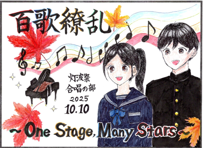 沖 美織奈さん作のスローガンとデザイン画を紹介します。昇降口にも掲示されています。