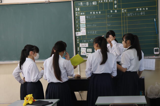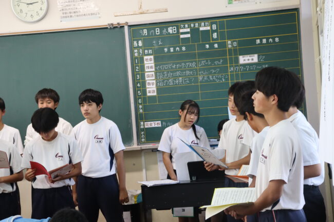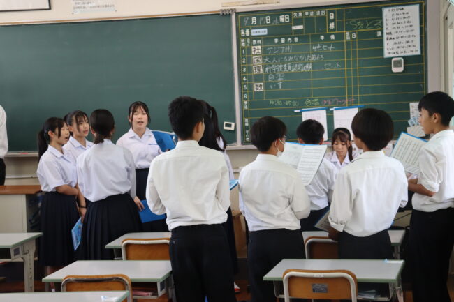 9/16(火)今日から帰りの会後15分間の練習が始まりました。今はパートの音取りが中心ですが、中間発表(9/26)までを中期目標にして取り組んでいます。