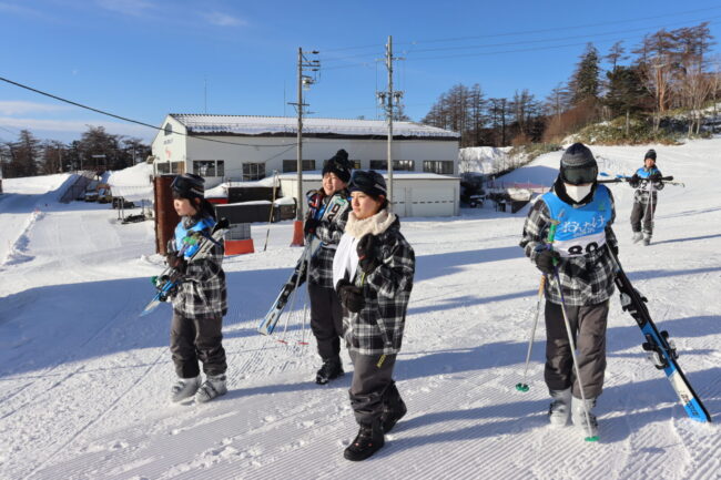 王滝スキー教室(2日目①) 2026/01/21 1/21(水)2日目の実習がスタートしました。今日はリフトにも乗り、少し上からも滑る予定です。(9時現在 快晴、気温 マイナス15℃、無風、ベストコンディション)