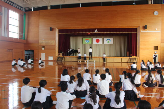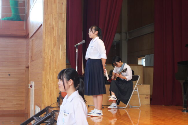 10/6(月)本番を今週に控え、司会・ナレーター・BGM・指揮・伴奏の確認を行いました。廊下や教室から聞こえる歌声の響きも変わってきました。本番がとても楽しみです。